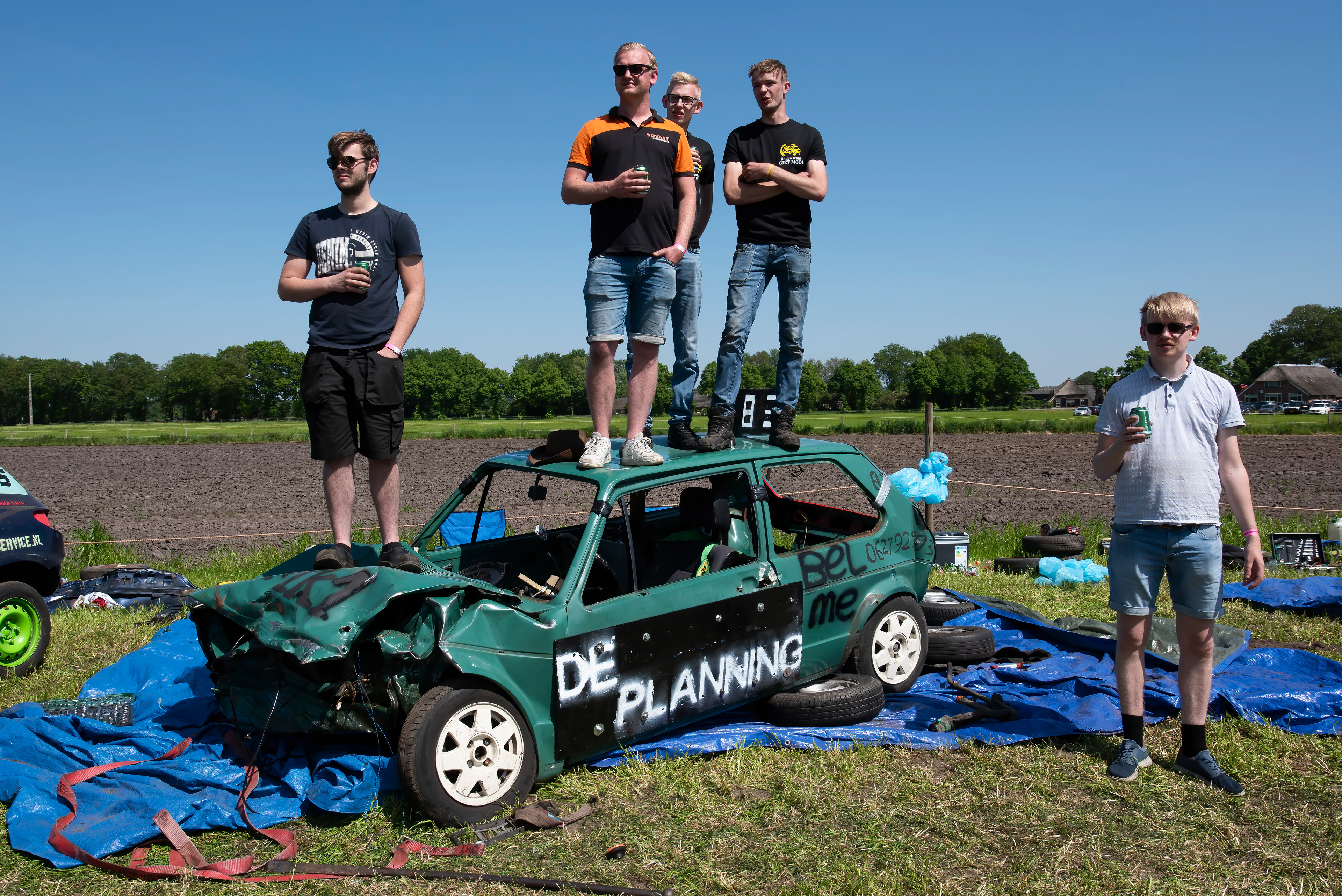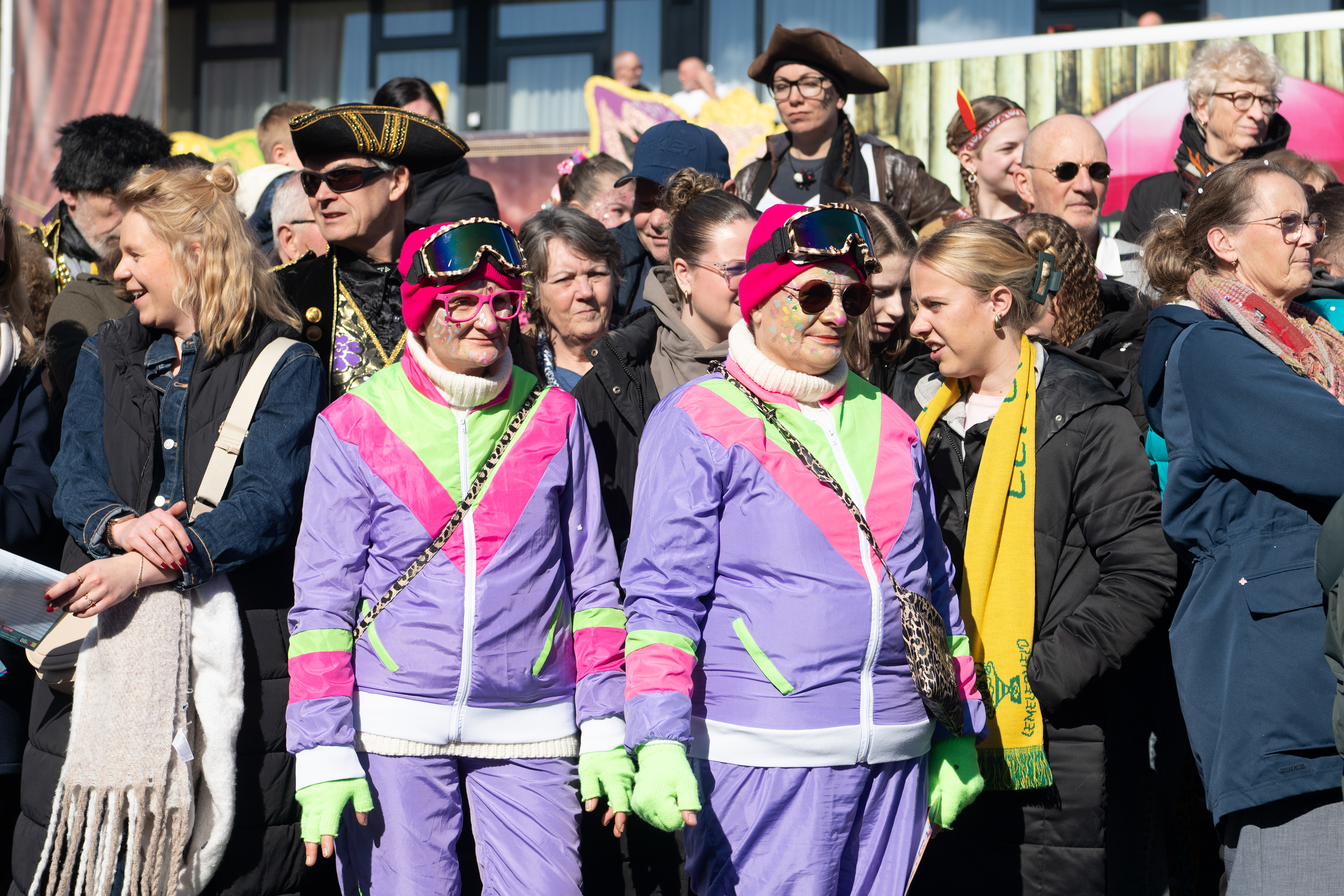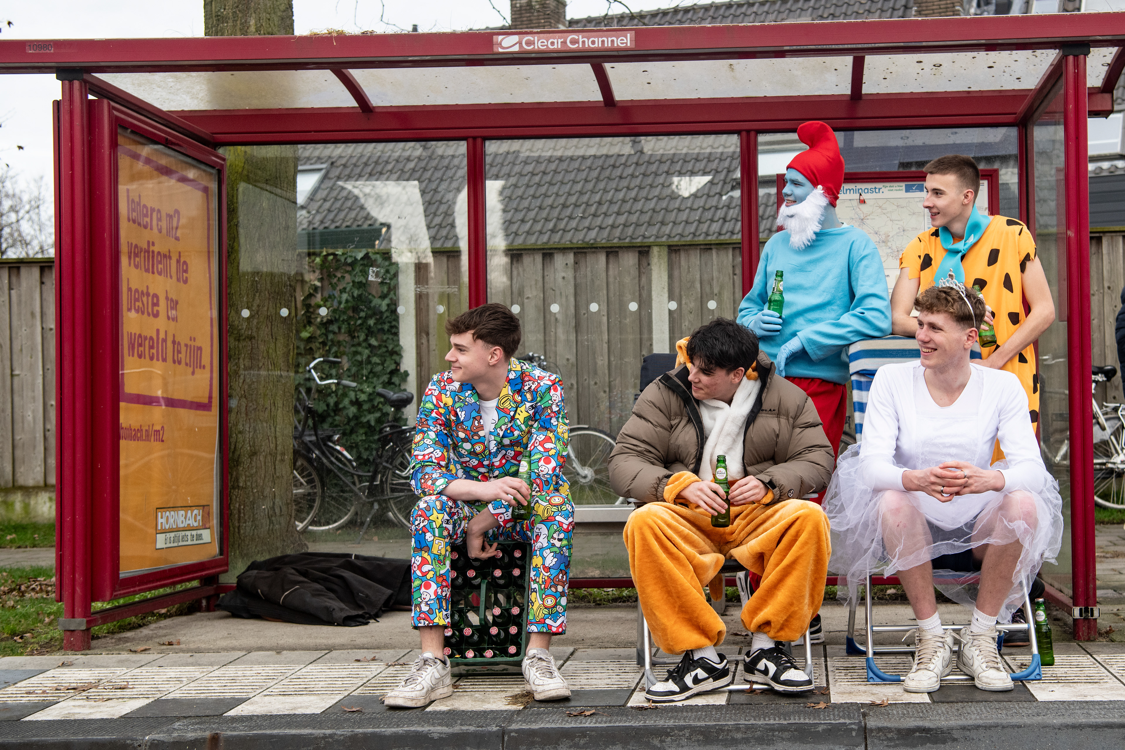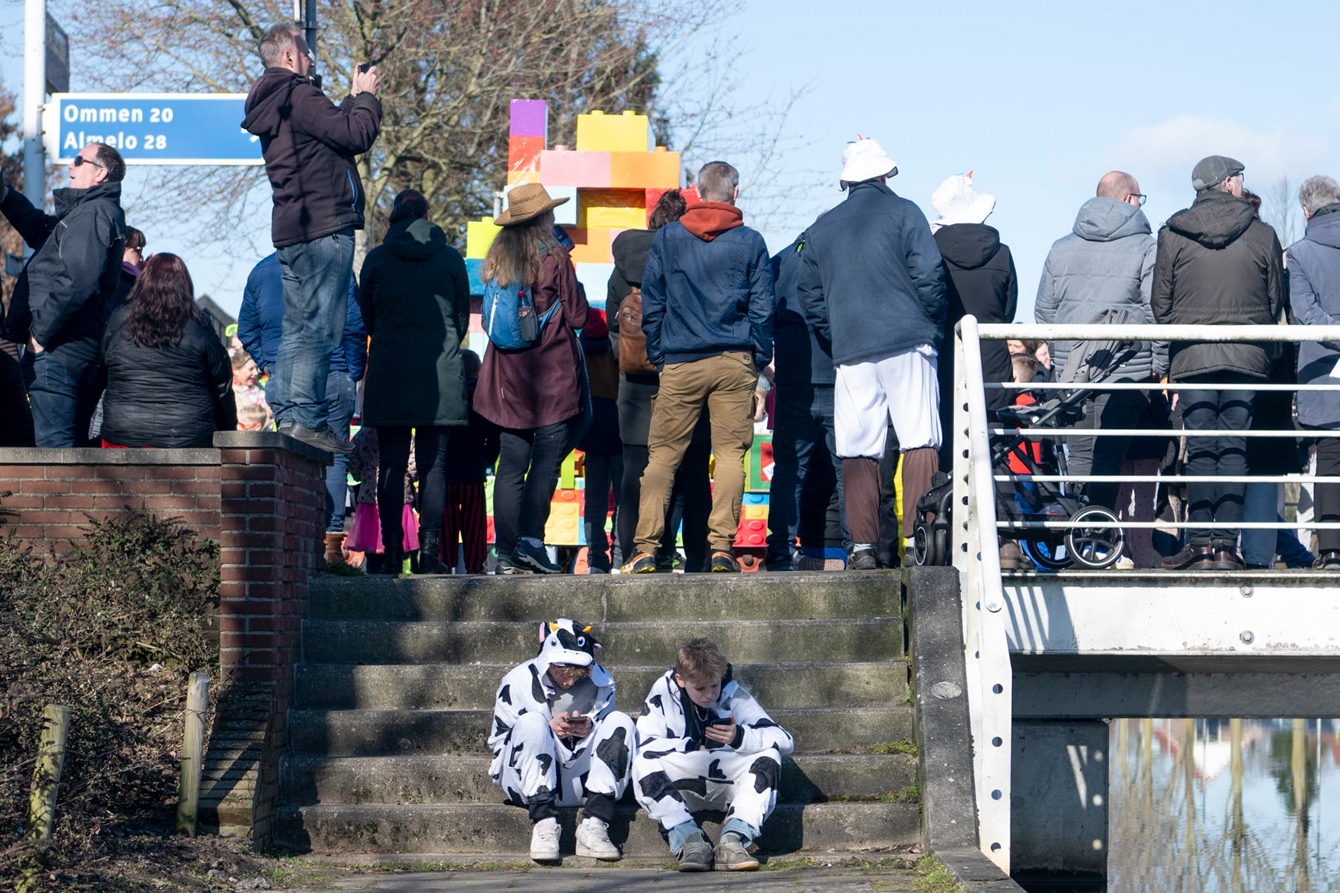 Groep jongeren wacht op de Carnavals stoet in Holten