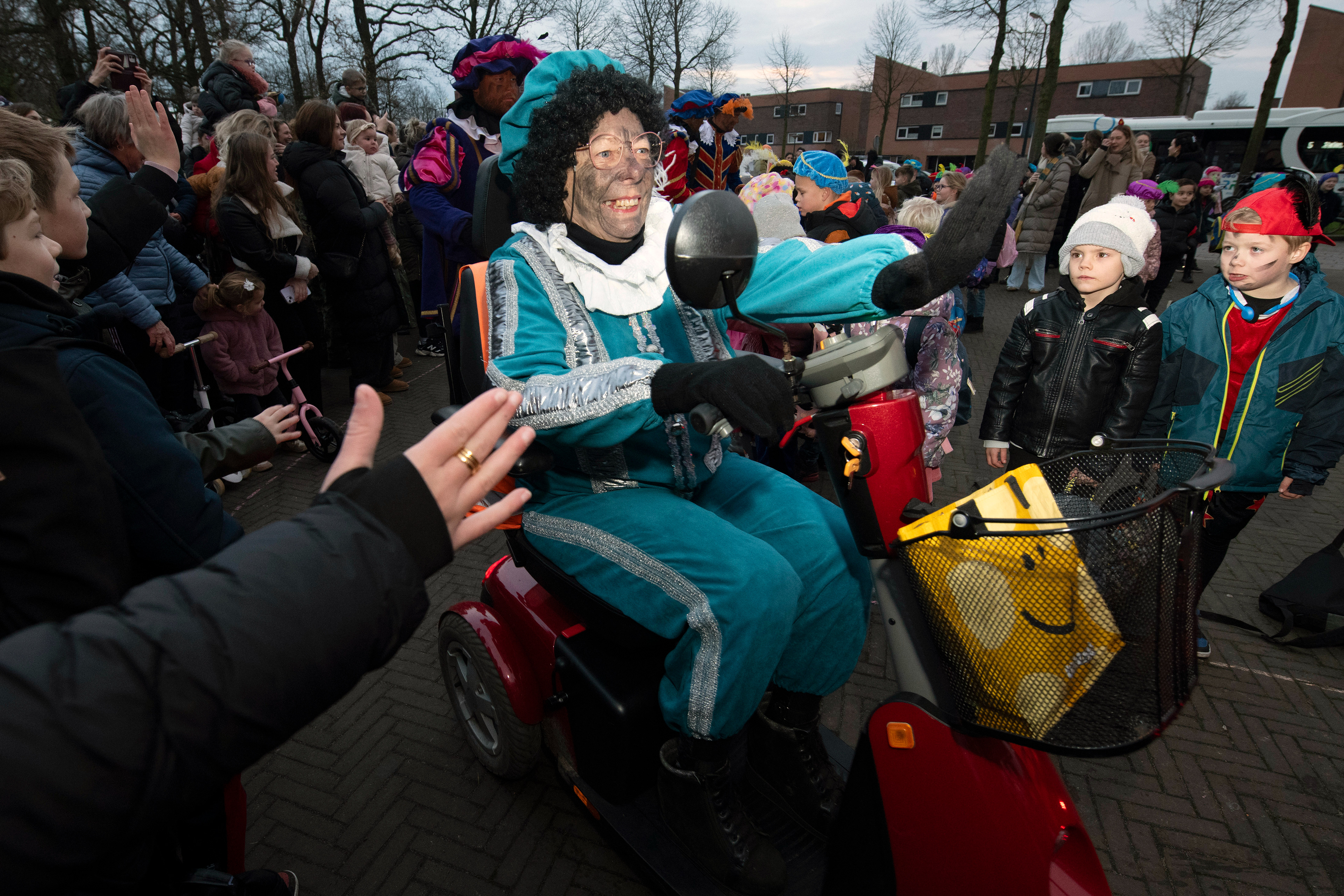 Ook de hulpjes van de Sint zijn aardig op leeftijd, met scootmobiel bezoeken ze een basisschool in Deventer.