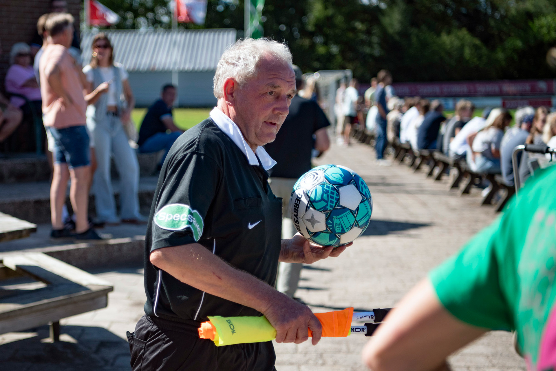 Inval scheidsrechter Arie komt na een half uur het veld op bij SVB Barchem tegen Lochem, De oorspronkelijke scheidsrechter kwam niet opdagen.